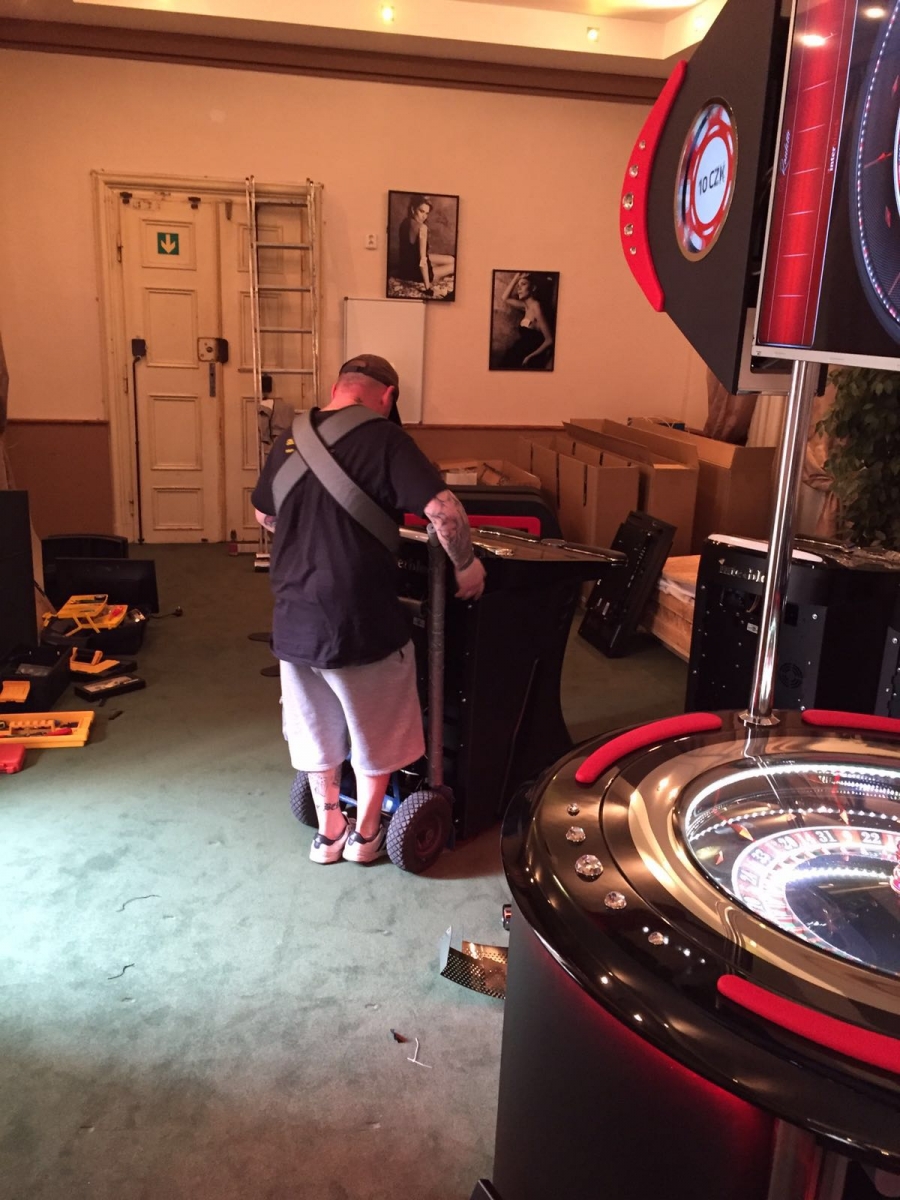 Daného úkolu se tak zodpovědně chopila naše posádka těžké party. Vzhledem k povaze stěhování samoobslužné rulety a ojedinělosti (ruleta je jediná svého druhu ve střední Evropě), bylo potřeba postupovat velmi systematicky a obezřetně.